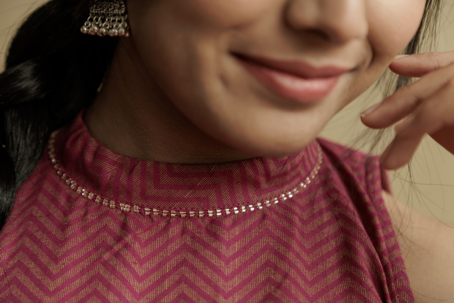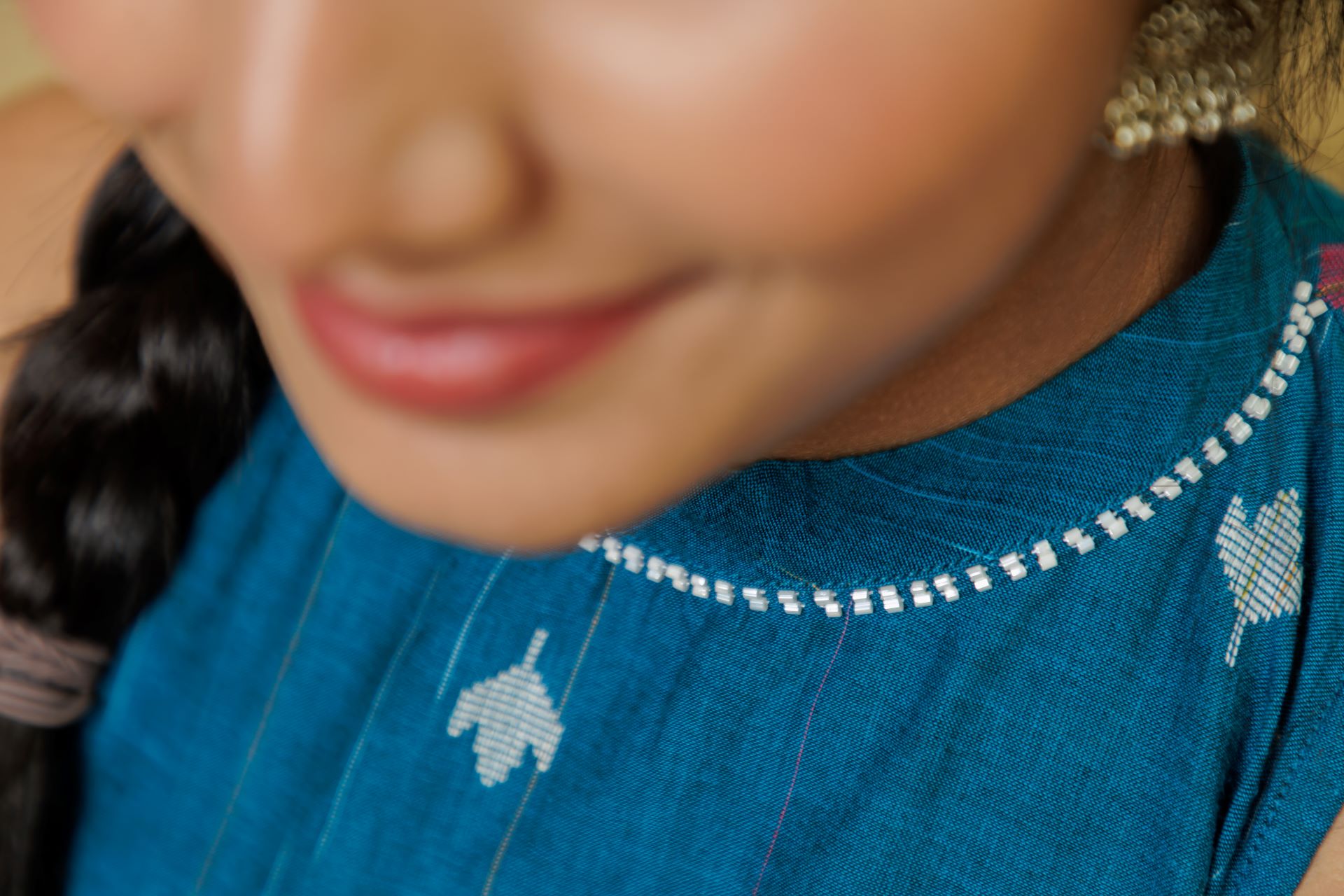 Introducing the Nayantara dress – your go-to piece for this festive season! This knee-length, A-line beauty features a stunning halter neck with a stand collar, designed to give you that effortlessly elegant look. The intricate bead work on the neck adds a touch of sophistication, elevating the entire ensemble to festive perfection. With a thoughtful pocket on one side, this dress merges style with functionality, making it perfect for all-day celebrations. Whether you’re dressing up for a special occasion or keeping it chic for a casual gathering, the Nayantara dress is a timeless addition to your wardrobe. Pair it with statement jewelry and let your festive spirit shine!
